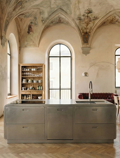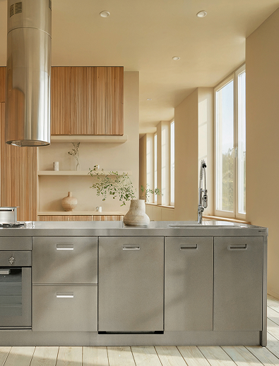 Una cucina in acciaio inox Artis è una scelta di stile. Nessun materiale possiede le qualità dell’acciaio; l’acciaio rispecchia e riflette, illumina l’ambiente con giochi di luci; la sua apparente freddezza si trasforma presto in calore; la sua resistenza sfida il trascorrere del tempo. Una cucina Artis è realizzata completamente in acciaio inox. Nel corso degli anni abbiamo profuso tanto impegno per fondere praticità e design creando un prodotto unico, caratterizzato da un design contemporaneo che si armonizza sia con ambienti moderni sia classici: le nostre creazioni spaziano da perfette geometrie di linee rette, impreziosite dalle maniglie di nostra esclusiva creazione a morbide linee arrotondate.