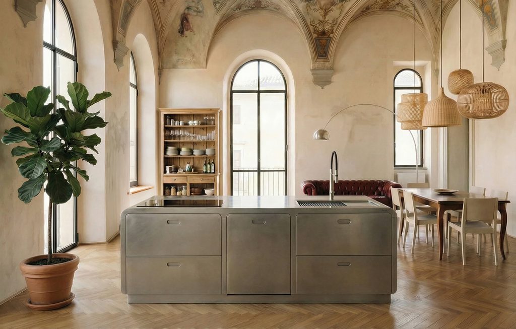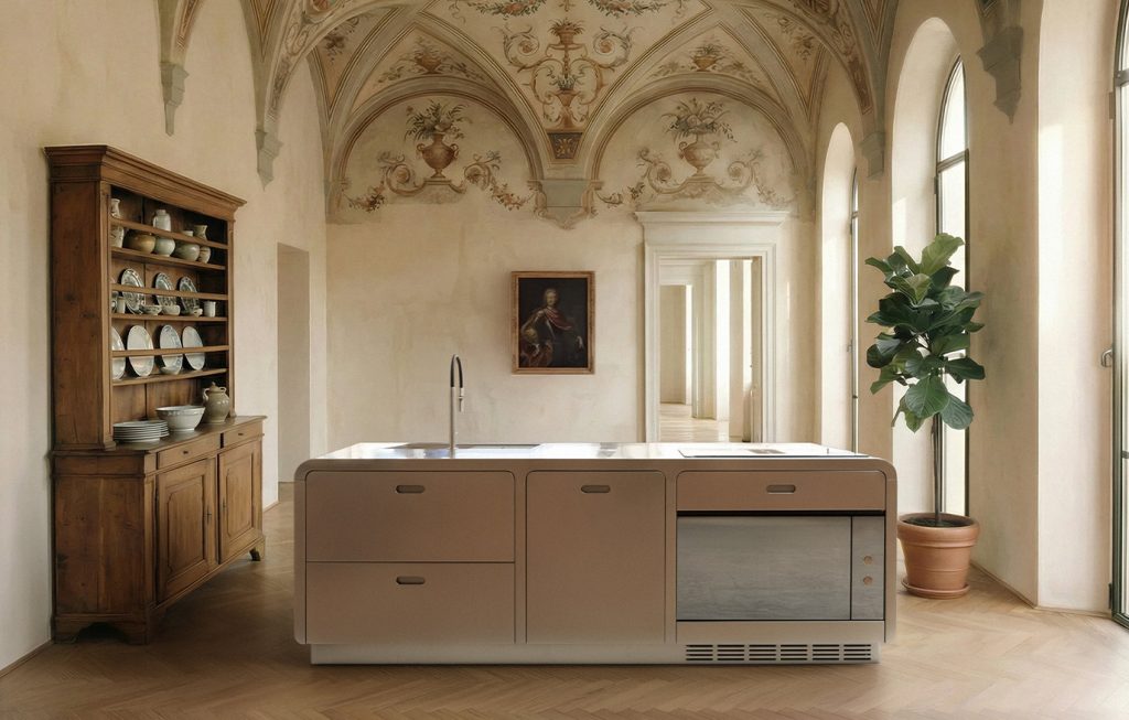 Estia, la dea della casa, il suo simbolo era il cerchio, la sua presenza era avvertita nella fiamma viva posta nel focolare rotondo al centro della case dell’antica Grecia. Caratterizzata da morbide linee arrotondate, Estia traduce l’idea antica della cucina e del calore come centro della casa, cerchio intorno a cui tutti gli spazi e le persone ruotano. La finitura Blurry, con le sue tonalità opache, si armonizza con dolcezza con le linee arrotondate di Estia trasmettendo sensazioni di tranquillità. La modularità di Estia consente di comporre sia una pratica e funzionale isola sia una cucina a parete.